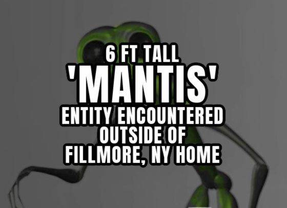 "This is in response to your recent post about a mantis-like entity. The incident occurred on June 22, 2018 a bit before 12 AM midnight in Fillmore, New York. I was in the shed to use WiFi for my phone because the kids were on devices and dogs are loud in the house.
